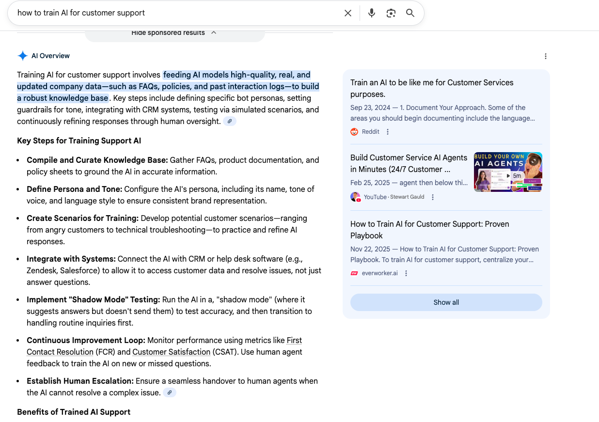 For every keyword where we rank on page 1, we're now appearing in AI-generated search summaries. This isn't a separate strategy—it's a byproduct of the same approach. High-quality, well-structured content that genuinely answers search intent gets picked up by traditional algorithms and AI systems alike.